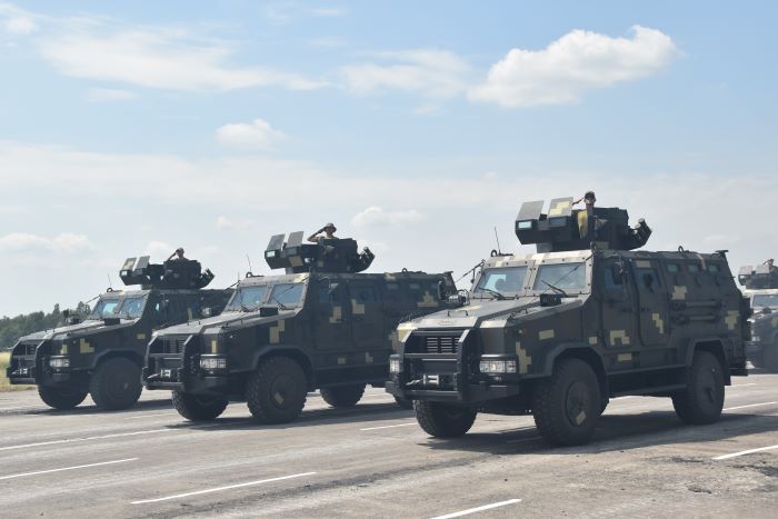 До парадних розрахунків входить артилерія, автомобільна техніка, зокрема санітарні авто та “Богдани”, реактивні системи залпового вогню БМ-21 “Град”, комплекси радіоелектронної боротьби з безпілотними літальними апаратами та ін.