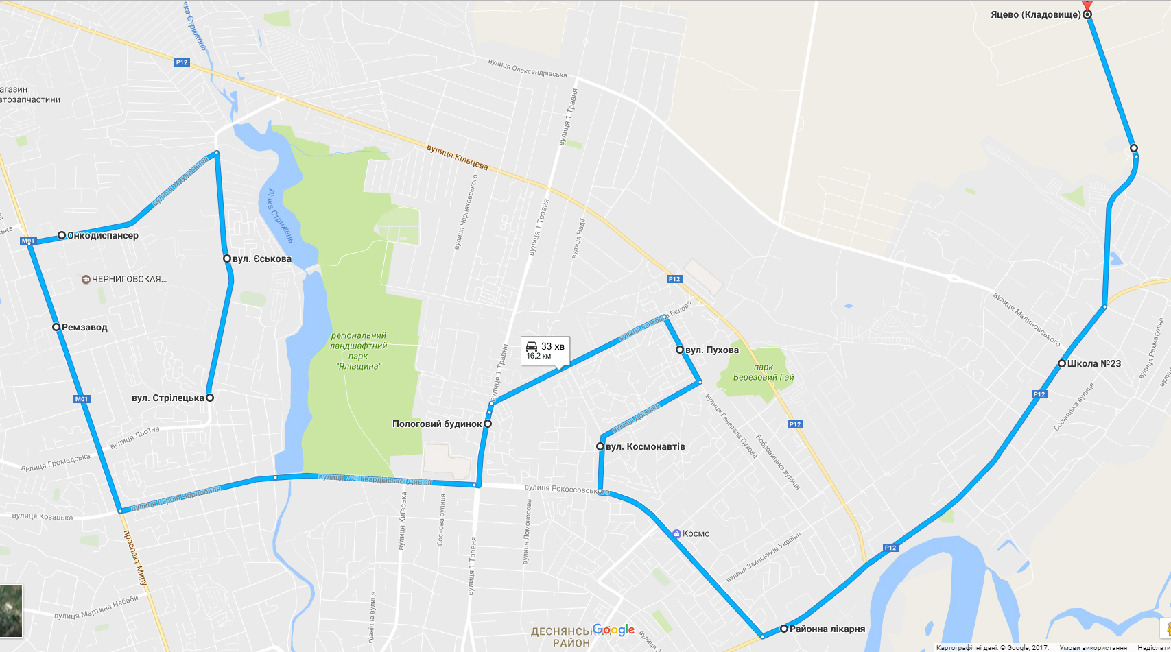 Та з метою збереження транспортного сполучення між районом вул. Єськова, районом Ремзавод та комплексом медичних закладів, що знаходяться в районі Чернігівської обласної лікарні, з 8 квітня 2017 року буде внесено зміни до схеми автобусного маршруту загального користування № 26 «вул. Волковича — Яцево» – перенесено кінцеву з вул. Волковича на вул. Стрілецьку та впроваджено новий шлях проходження: в прямому напрямку: вул. Стрілецька – вул. Єськова — вул. Михалевича – пр. Миру – далі за маршрутом та в зворотному напрямку: Яцево – за маршрутом – пр. Миру – вул. Михалевича – вул. Єськова – вул. Стрілецька (кінцева).