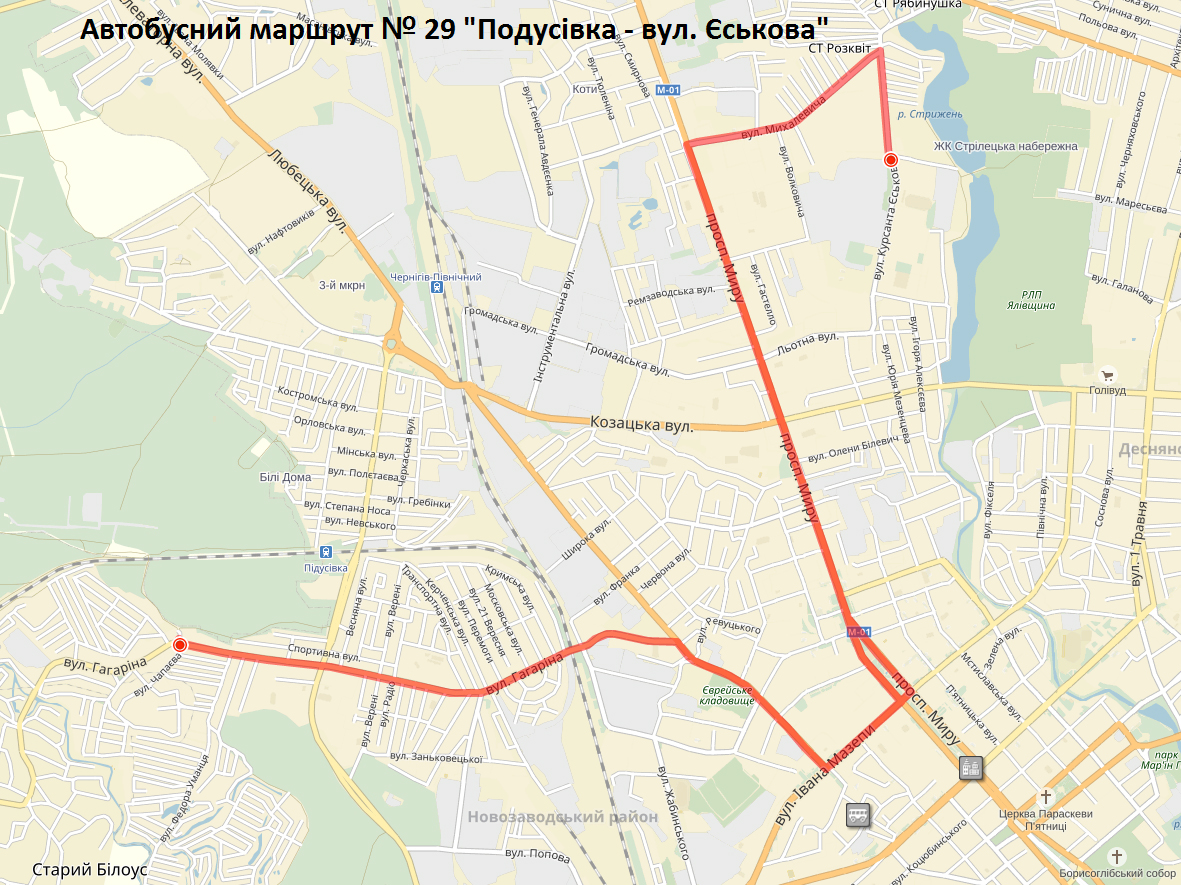 Автобусні маршрути №№29 і 26 в Чернігові змінюють свої свої напрями руху.